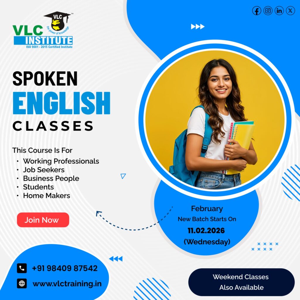 20 Jan English Up Coming English Classes – Spoken English In Tambaram Chennai VLC Institute Tambaram Spoken English Classes, We kindly inform you that the new batches start onFEBRUARY – 2026Timings availableWeek days – 07.02.2026 ( Wednesday )07 to 09 am, 10 to 12 noon,05 to 07 pm, 07 to 09 pm.Weekend classes also availableSaturday – 05 to 08 pm,Sunday – 8.30 to 11.30 am.Contact : 9840987542 / 7200087542. Contact Us